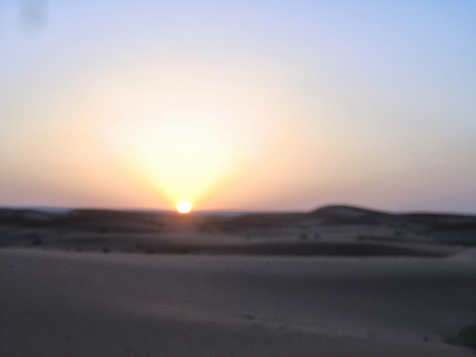 サハラの朝がきます。朝焼けが好きです。世界各国でみてきた朝焼けの中でも記憶に残る朝焼けでした。