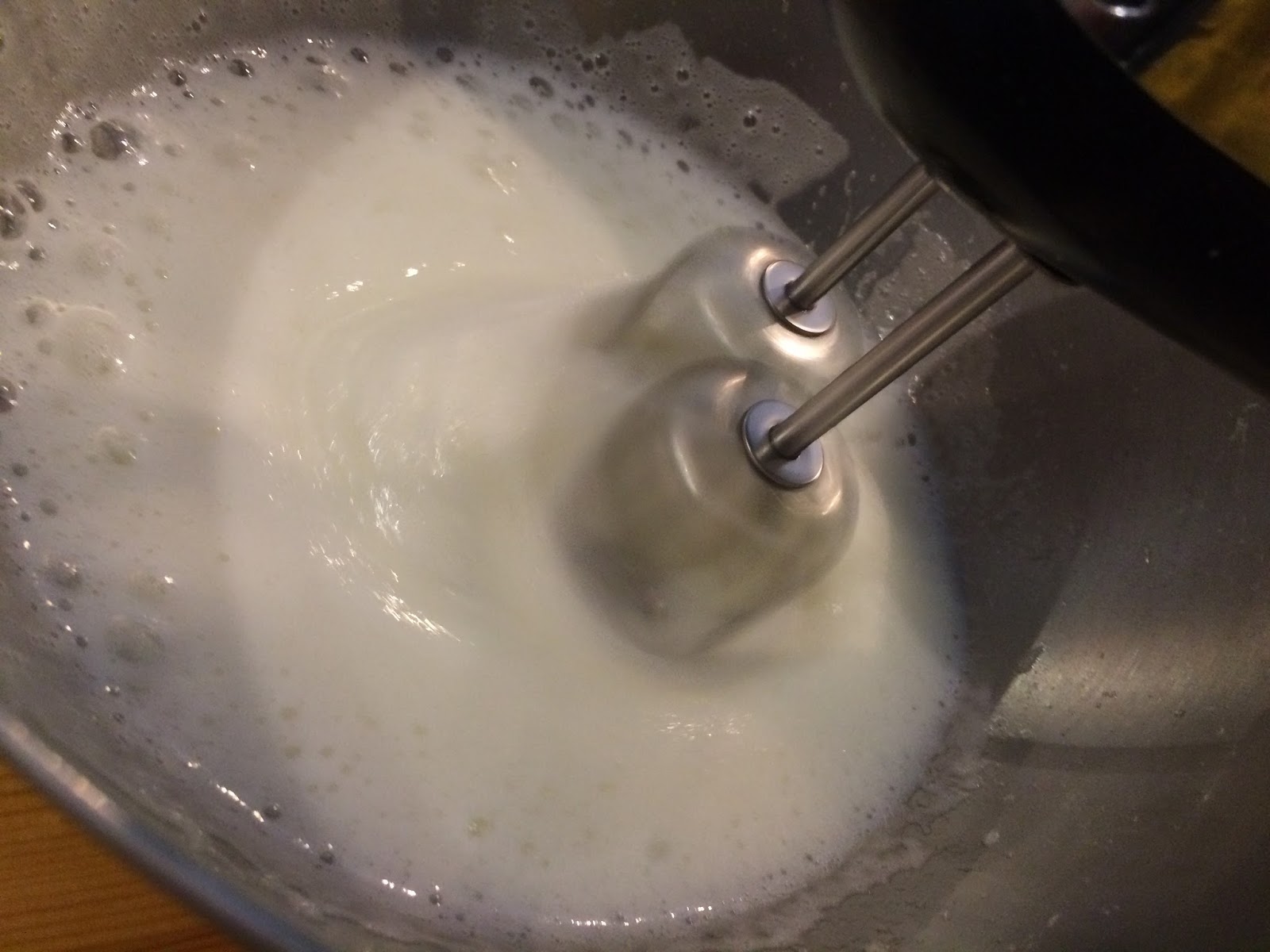 手作りチョコレートと生クリームで特製のチョコレートホイップができました。ホイップは固め仕上げました。